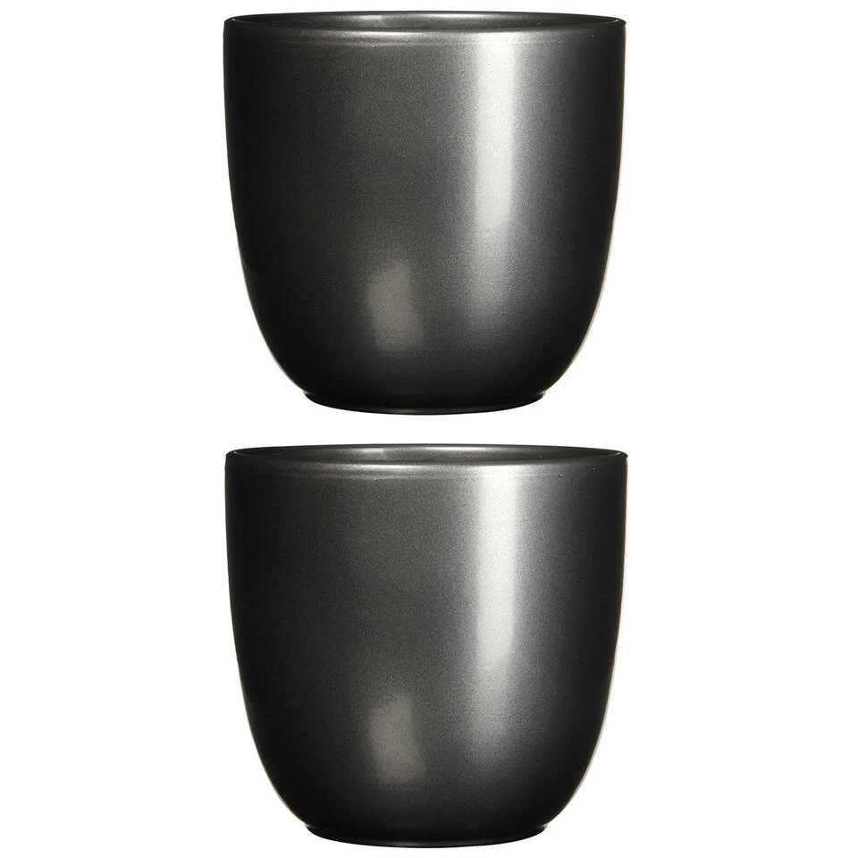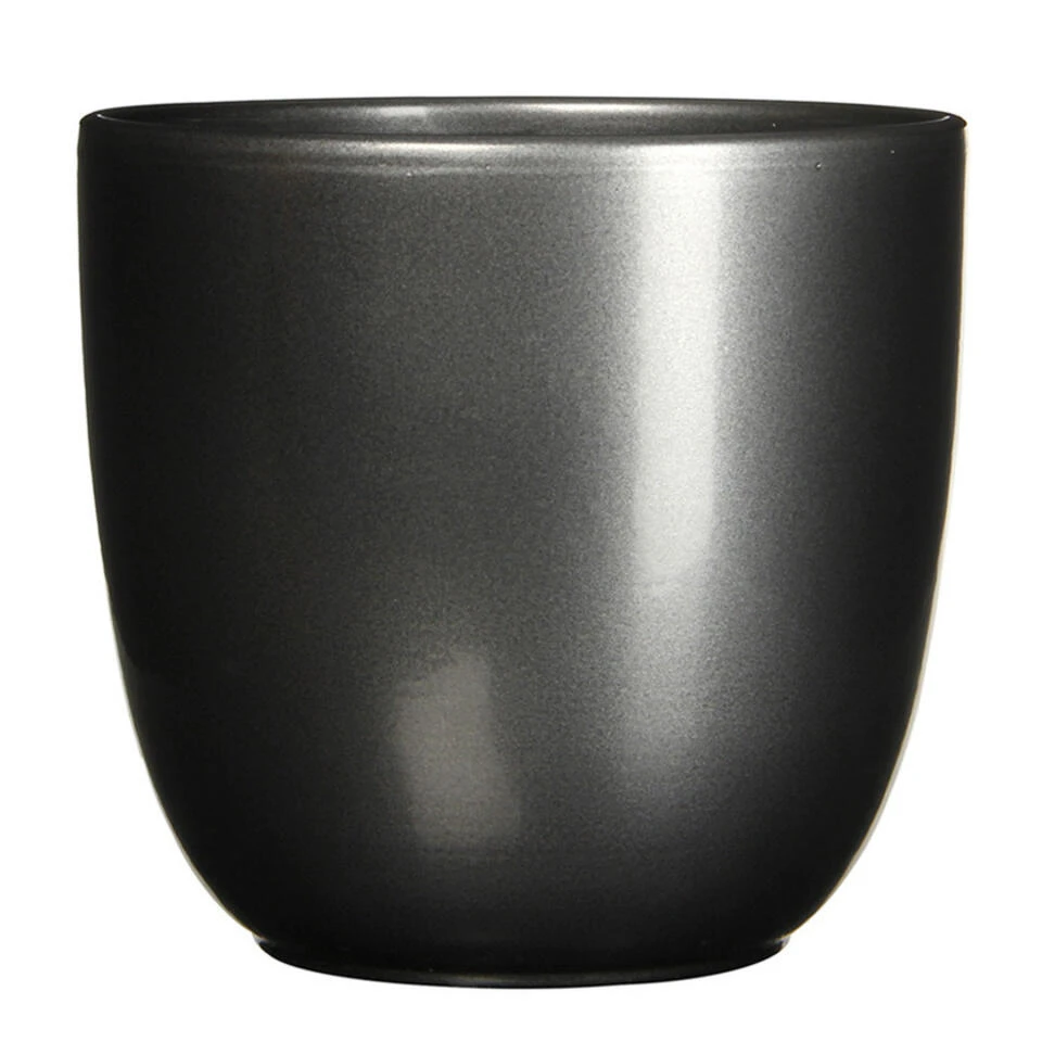 Bloempot in de kleur antraciet grijs in een mooi glans motief keramiek voor een kamerplant H14 x D14.5 cm. Deze ronde bloempot uit de Tusca home basics serie past altijd goed in elke huis/interieur. Gemaakt van terracotta/keramiek. Diameter: 14.5 cm. Hoogte: 14 cm.