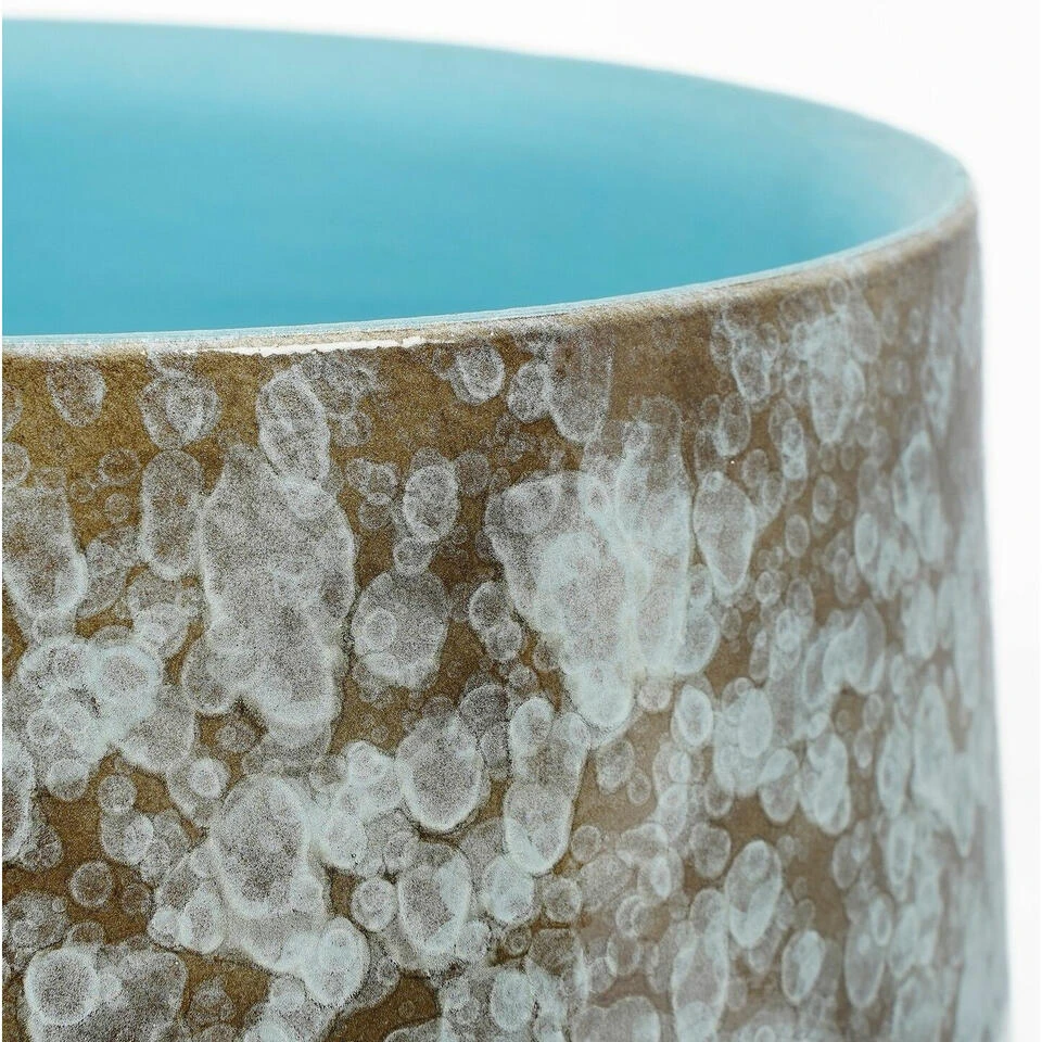 Plantenpot/bloempot van terracotta in de kleur blauw shadow met diameter 19 cm en hoogte 17 cm. Stijlvolle bloempotten voor binnen gebruik met een metallic shadow finish. Serie: Oliver. Deze terracotta pot is volledig met de hand gemaakt door traditionele Portugese pottenbakkers. Door de aandacht voor elke pot is elk stuk uniek. Bovendien geeft de bijzondere afwerking het een metaalachtig uiterlijk.