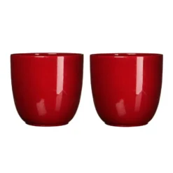 Bloempot in de kleur donkerrood in een mooi glans motief keramiek voor een kamerplant H18.5 x D19.5 cm. Deze ronde bloempot uit de Tusca home basics serie past altijd goed in elke huis/interieur. Gemaakt van terracotta/keramiek. Diameter: 19.5 cm. Hoogte: 18.5 cm.