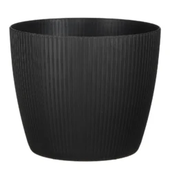 Mica Decorations Plantenpot – Kunststof – Zwart/ribbels- D20/H17 Cm