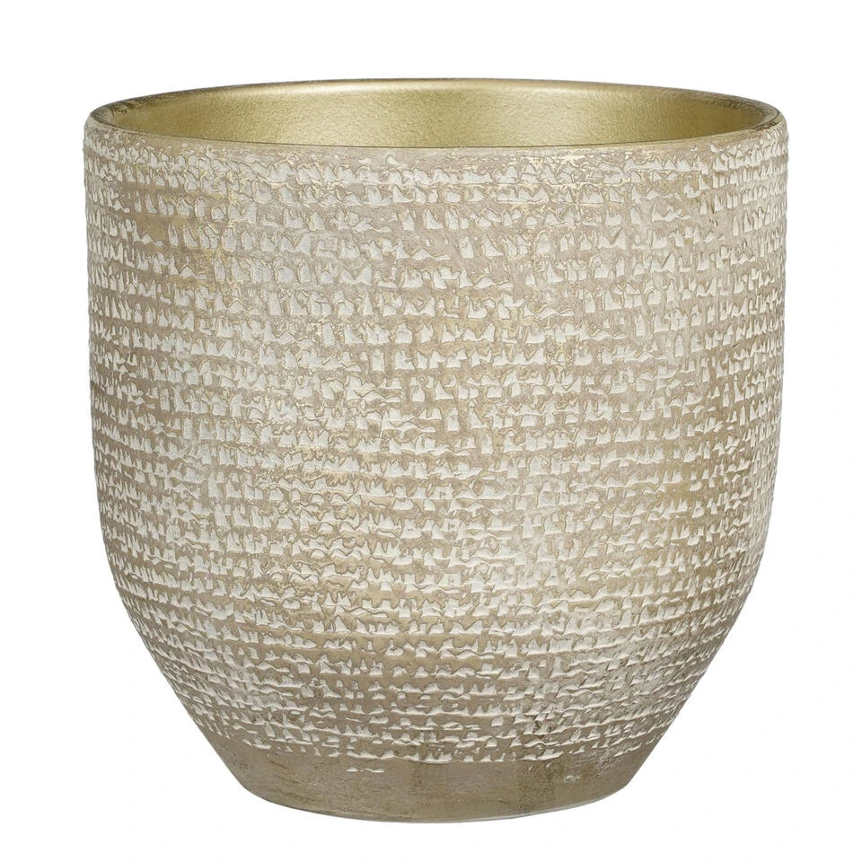 Mica Decorations Plantenpot – Terracotta – Champagne/wit – D24/H22 Cm