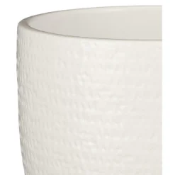 Plantenpot/bloempot van terracotta in de kleur wit met een modern relief flakes patroon. Diameter 20 cm en hoogte 18 cm. Stijlvolle bloempotten voor binnen gebruik. Serie: Carrie. De zeer mooie potten met prachtige buitenzijde zijn met de hand gemaakt in Portugal. Derhalve is geen pot exact hetzelfde en hebben de bloempotten een echt karakter. Materiaal: Terracotta. Tip: zet een schotel onder de pot om eventueel lekken tegen te gaan. Potten van steen zijn niet 100% waterdicht.