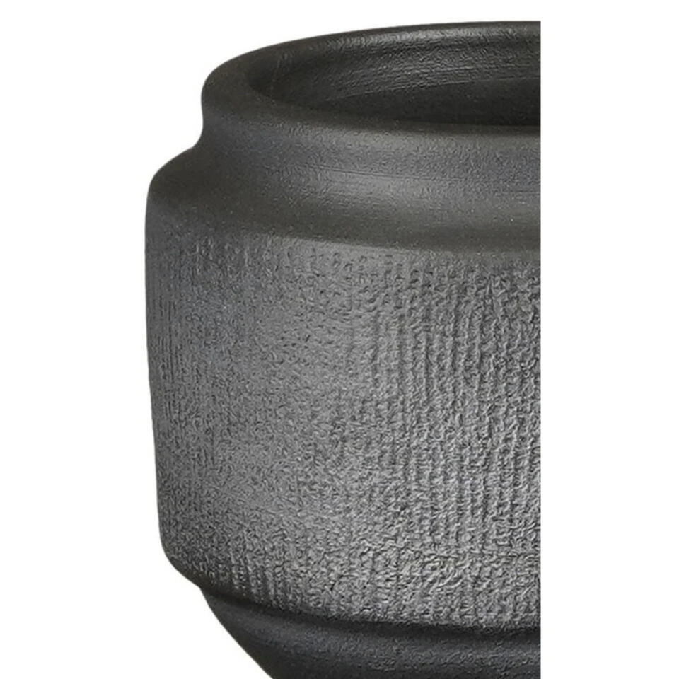Plantenpot/bloempot van terracotta in de kleur zwart met een modern relief patroon. Diameter 25 cm en hoogte 21 cm. Stijlvolle bloempotten voor binnen gebruik. Serie: Aveiro. De stijlvolle pot met een prachtige buitenzijde is met de hand gemaakt in Portugal. Derhalve is geen pot exact hetzelfde en hebben de bloempotten een echt karakter. Materiaal: Terracotta. Tip: zet een schotel onder de pot om eventueel lekken tegen te gaan. Potten van steen zijn niet 100% waterdicht.