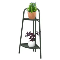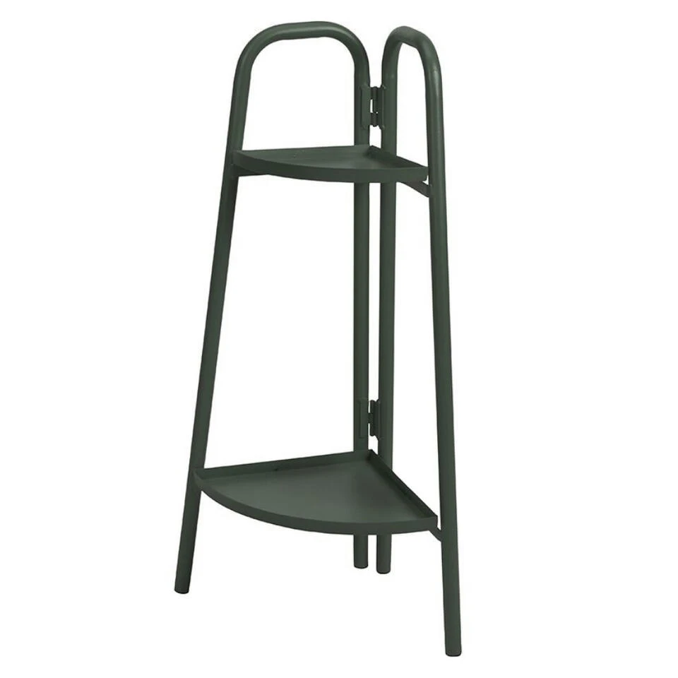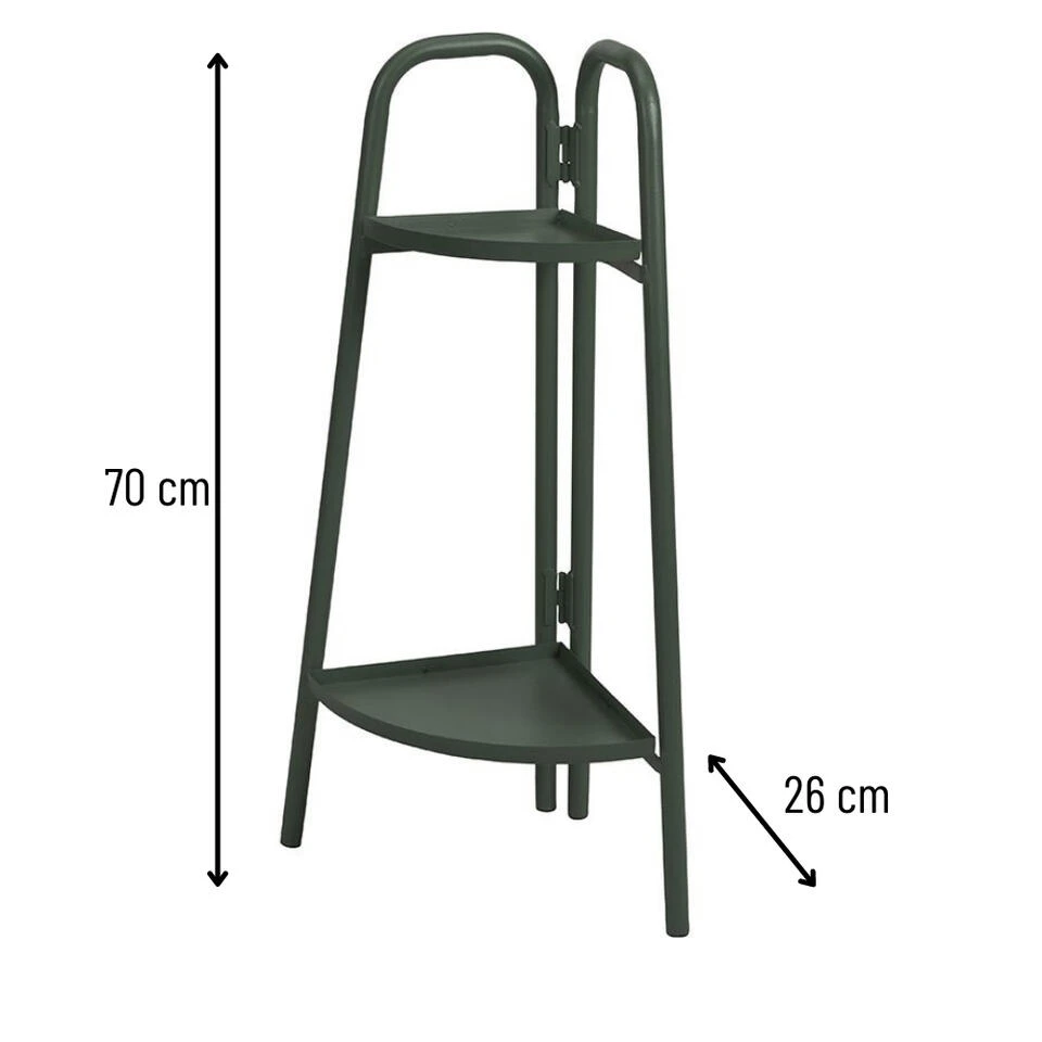 Dit Orange85 plantenrek is een echte blikvanger in uw woonkamer, tuin of patio. Het rek heeft een hoekvorm, waardoor hij perfect in de hoek van een ruimte past. Gebruik van dit 2-laagse rek is een ruimtebesparende manier om meerdere planten en bloemen kwijt te kunnen. Het rek heeft een matgroene kleur en is geschikt voor zowel binnen als buiten gebruik. Dit product is eenvoudig in elkaar te zetten met de bijgeleverde schroeven.