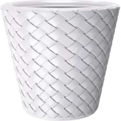 1x Stuks kunststof Matuba rotan bloempotten/plantenpotten wit 35 cm. Kras en stootvaste bloembak/plantenbak met rotanvlechtwerk uitstraling. Zonder afwateringsgaten. De bloembakken/plantenbakken zijn geschikt voor binnen en buiten gebruik. Serie: Matuba. Formaat: omtrek ca 34,8 cm. Hoogte: ca 32,4 cm. Inhoud: 19 liter. Materiaal: kunststof. Binnen/buiten decoratie bloempot/plantenpot.