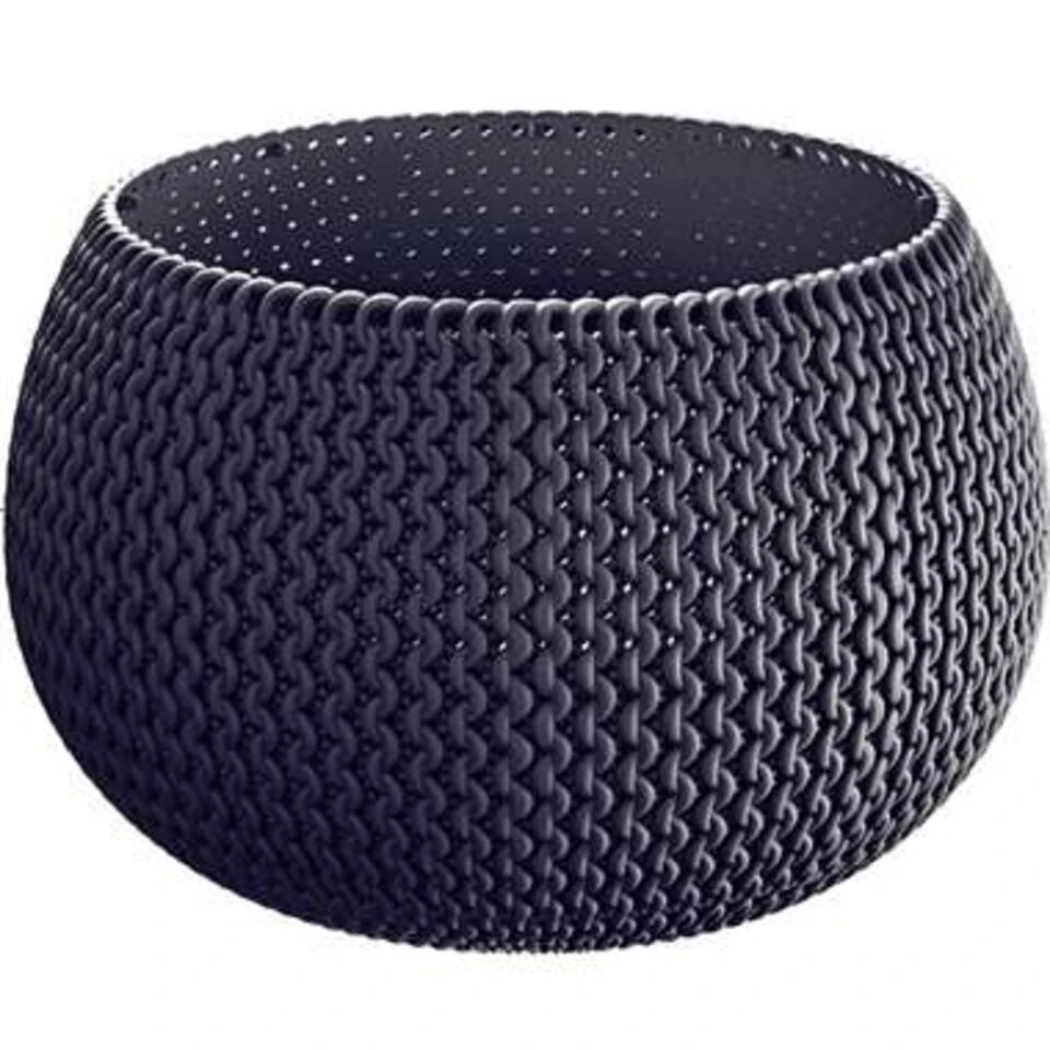 1x Stuks ronde antraciet Splofy bloempotten/plantenpotten 4 liter. Kras en stootvaste bloempotten/plantenbakken met de uitstraling van zachte, grof gebreide wol. De bloempotten/plantenpotten hebben geen afwateringsgaten. De bloempotten/plantenpotten zijn geschikt voor binnen en buiten gebruik. Serie: Splofy bowl. Formaat: diameter: ca 29 cm. Hoogte: ca 19,5 cm. Inhoud: 4 liter. Materiaal: kunststof. Tuin/woonkamer decoratie bloempot/plantenbak.