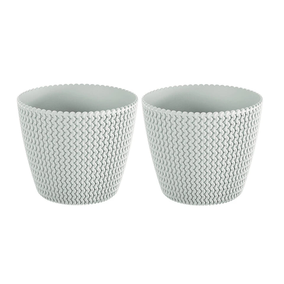 1x Kunststof Splofy bloempotten/plantenpotten wit 22 cm. Kras en stootvaste bloempot/plantenpot met de uitstraling van zachte, grof gebreide wol. Formaat: diameter bovenkant: ca 21,8 cm. Hoogte: ca. 18,4 cm. Materiaal: kunststof. De potten zijn geschikt voor binnen en buiten gebruik.