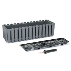 Fence-look plantenbak/bloembak kunststof 58 x 18 x 16 centimeter in het steengrijs. De steengrijze kleur en natuurlijke uitstraling passen perfect bij elke omgeving. De bak kan zowel binnen als buiten gebruikt worden en kan eenvoudig aan een hek of muur worden bevestigd. Met deze praktische en stijlvolle bak geef je op een makkelijke manier kleur aan je tuin of balkon!