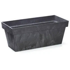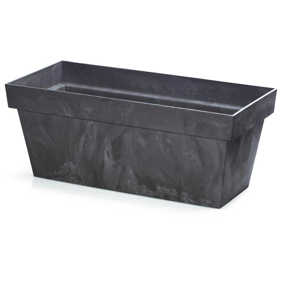 1x Kunststof betonlook plantenbak/bloembak antraciet 60 cm. Kras en stootvaste bloembak/plantenbak. De bloembakken/plantenbakken zijn geschikt voor binnen en buiten gebruik. Serie: Betonlook. Formaat: lengte ca 58,7 cm. Breedte: ca 26,4 cm. Hoogte: ca 23.6 cm. Materiaal: kunststof.