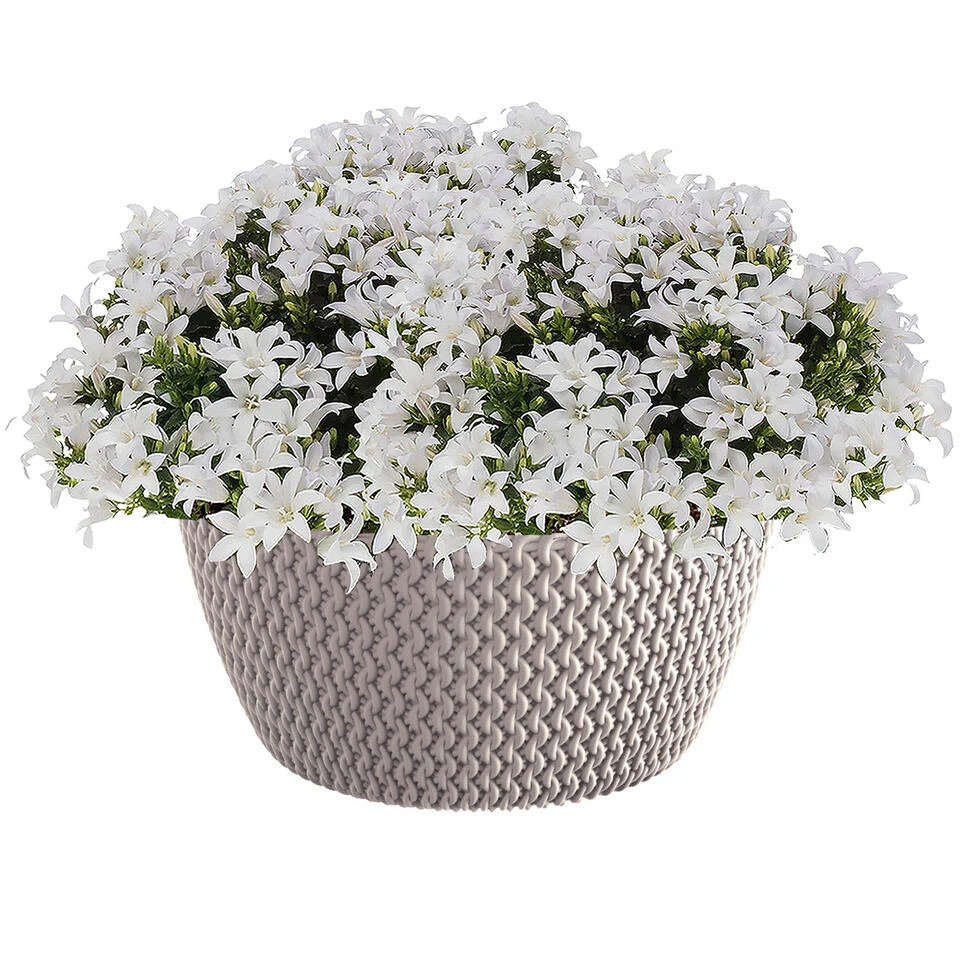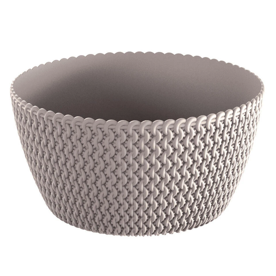 Tafelstuk plantenpot/bloempot van kunststof met diameter 24 cm en hoogte 12 cm in het taupe/beige. Geschikt voor buiten en binnen. Vorstbestendig ja. Basic plantenpotten voor op tafel in de tuin en/of binnen.