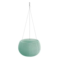 Plantenpot/bloempot hangend kunststof dia 29 cm en hoogte 19.5 cm in het mintgroen met metalen ophanghaak. Uit de Splofy WS serie. Geschikt voor buiten en binnen. Mooie stijlvolle uitstraling. Vorstbestendig ja. Basic plantenpotten voor in de tuin, balkon of binnen. Deze potten hebben geen afwateringsgaatjes, maar wel een binnenbak.