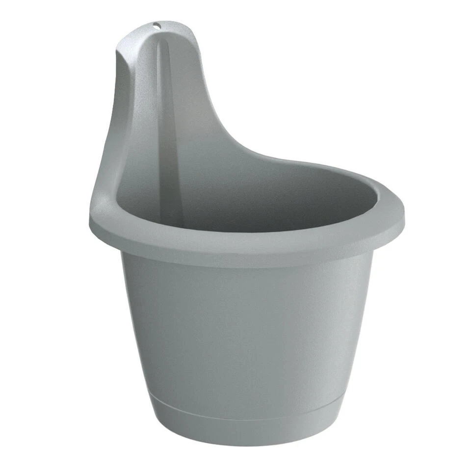 Muur/wand bevestiging plantenpot/bloempot kunststof dia 20 cm en hoogte 20 cm steengrijs. Vorstbestendig ja. Plantenpotten voor buiten om op te hangen aan een haakje.