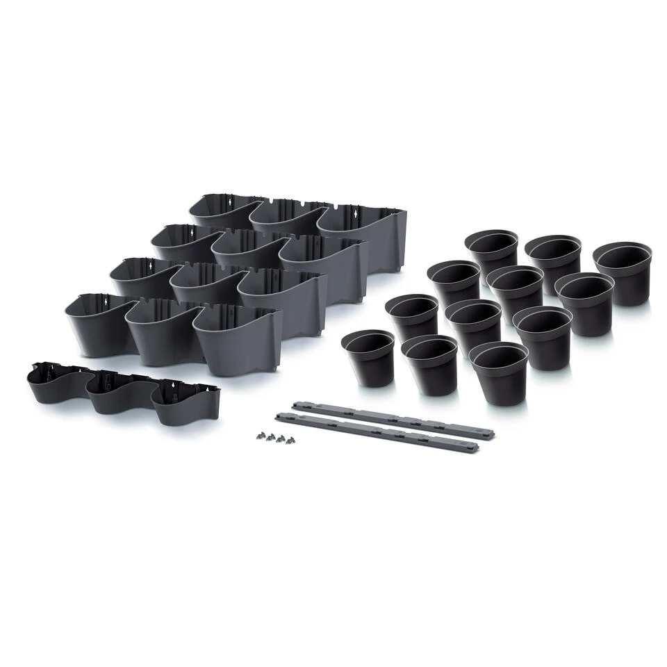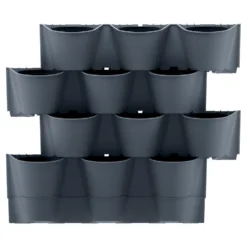 Verticale tuin hangende kunststof plantenpotten modulair antraciet grijs 67 x 18 x 57 cm.