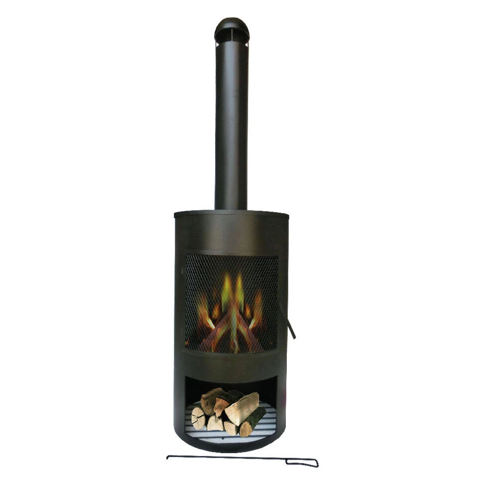 Naast sfeervol is deze tuinhaard ook veilig in gebruik. De hoge schoorsteen voert de rook goed af en het gaas rondom de korf voorkomt dat as en vonken rondvliegen.