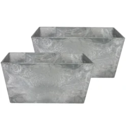 Bloempot/plantenpot rechthoekig balkonbak van gerecycled kunststof en steenpoeder in de kleur steengrijs/betonlook met diameter 30 cm en hoogte 14 cm. Artstone Ella serie potten voor buitenplanten, binnenplanten of kunstplanten. Een unieke duurzame mix van materialen dat nu geen afval is, maar een prachtige duurzame bloempot, 100% recyclebaar. Deze serie potten hebben een eigen drainagesysteem onderin de pot met water plug zodat ze geschikt zijn voor binnen en buiten.