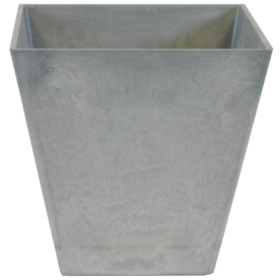 Bloempot/plantenpot vierkant van gerecycled kunststof en steenpoeder in de kleur steengrijs/betonlook met diameter 30 cm en hoogte 30 cm. Artstone Ella serie potten voor buitenplanten, binnenplanten of kunstplanten. Een unieke duurzame mix van materialen dat nu geen afval is, maar een prachtige duurzame bloempot, 100% recyclebaar. Deze serie potten hebben een eigen drainagesysteem onderin de pot met water plug zodat ze geschikt zijn voor binnen en buiten.