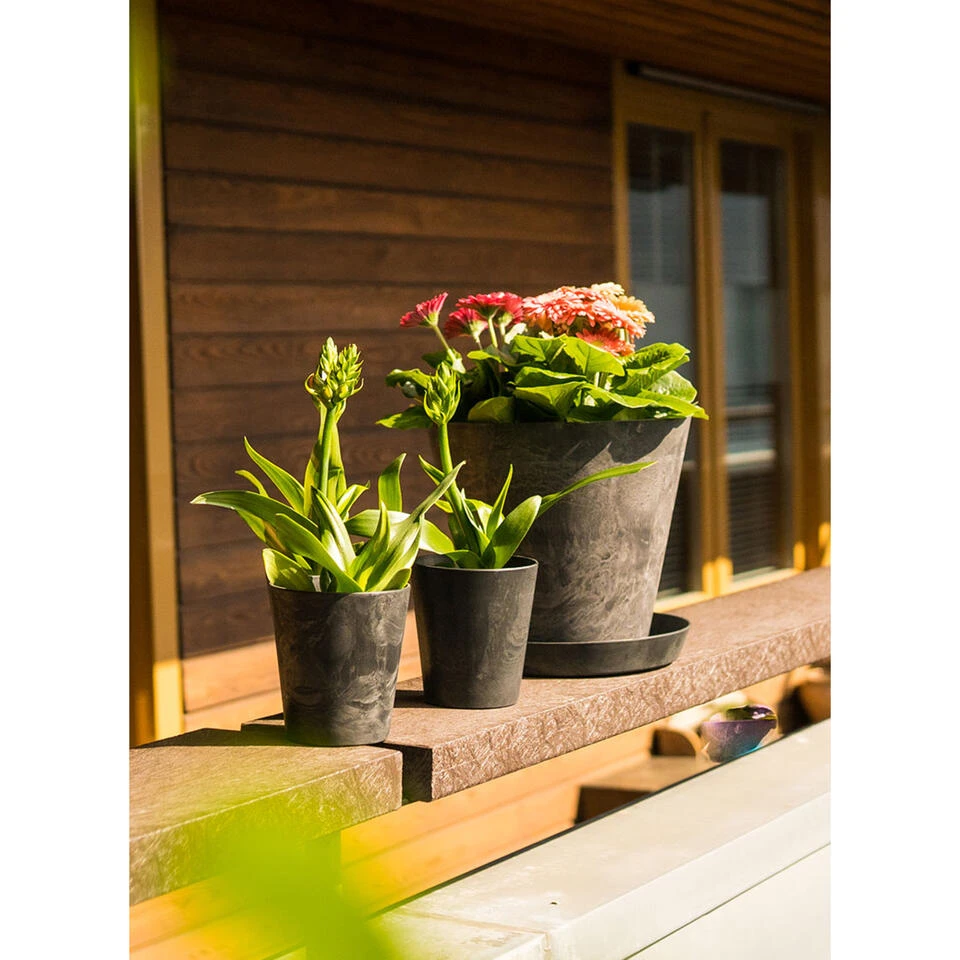 Ter Steege Plantenpot/bloempot – Natuursteen Look – Zwart – D17 X H 24 Cm
