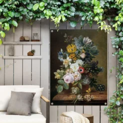 Onze buitenposter is de perfecte aanvulling voor uw tuin, terras of balkon. Deze wanddecoratie maakt van een saaie muur of schutting een echte blikvanger. Tuinposters printen we met een 6-kleuren latex printer op mat polyester canvas. Het doek is daardoor geschikt voor buitengebruik en bestand tegen zonlicht en regen.Je kunt het doek ophangen aan de voorgemonteerde aluminium ogen. Gebruik daarvoor schroeven, spijkers of spanelastieken. (niet meegeleverd). Voor een langere levensduur kan de tuinposter ook buiten onder de veranda of een afdak gehangen worden. De outdoor poster printen we direct na bestelling en wordt binnen 4 werkdagen afgestuurd in een kartonnen doos.Kenmerken