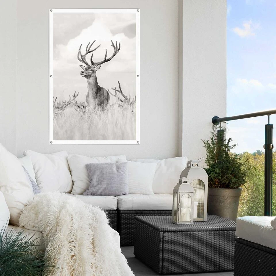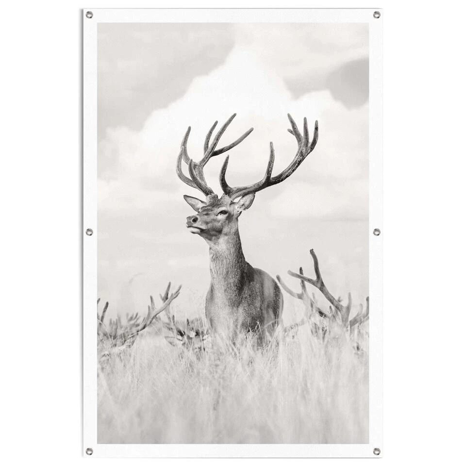 Tuinposter Trots Hert 120×80 Cm Zwart-Wit