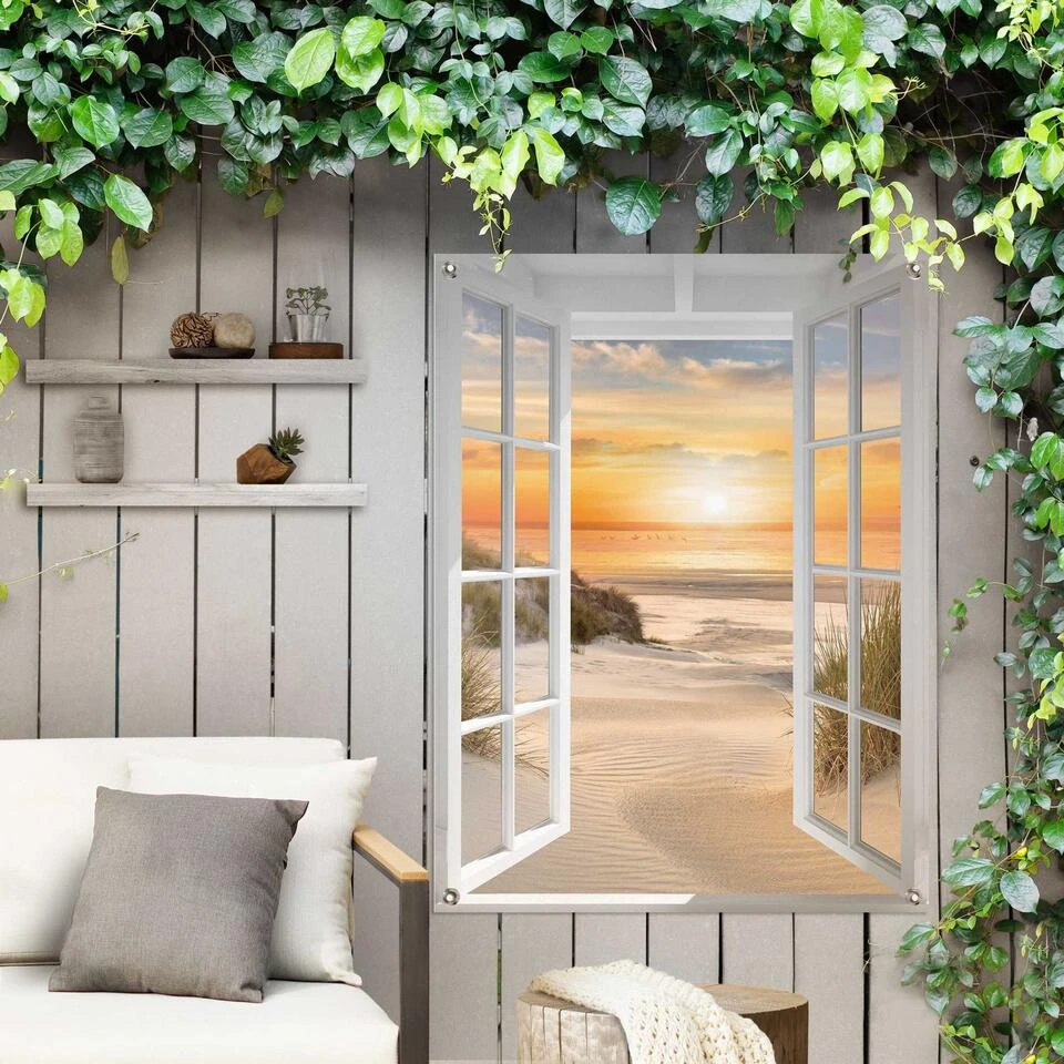Tuinposter Zonsondergang Op Het Strand 80×60 Cm Oranje
