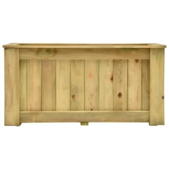 Deze plantenbak is gemaakt van massief geïmpregneerd grenenhout en is duurzaam en weerbestendig, hierdoor is hij zeer praktisch voor gebruik buitenshuis het hele jaar door. De plantenbak is diep en breed genoeg om een grote hoeveelheid grond op te nemen en biedt voldoende ruimte aan je planten. De plantenbak is eenvoudig te monteren.