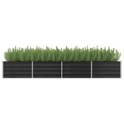 De plantenbak is diep en breed genoeg om een grote hoeveelheid grond vast te houden en biedt voldoende ruimte aan planten, groenten, kruiden en bloemen. De bak is gemaakt van robuust gegalvaniseerd staal en is weerbestendig, en dus zeer praktisch voor gebruik buitenshuis. De plantenbak vereist montage.