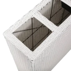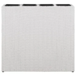 Deze plantenbak is gemaakt van duurzaam, waterbestendig rattan en is de perfecte aanvulling op je buitenruimte. De strakke weefstructuur zorgt voor een gladde afwerking en goede stabiliteit. De plantenset bestaat uit 4 kunststof potten waardoor de set een lange levensduur heeft. Je kunt allerlei levendige groene planten en bloemen netjes in de potten plaatsen. De levering bevat 1 plantenbak en 4 verwijderbare potten met dezelfde afmetingen.
