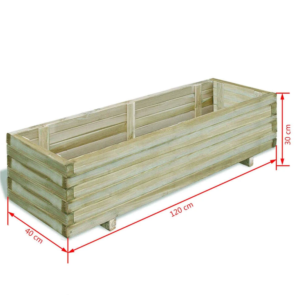 Deze houten plantenbak is gemaakt van groen geïmpregneerd grenenhout, hierdoor is hij erg stevig, duurzaam en rotbestendig. De 2 houten poten aan de onderkant dragen bij aan de stabiliteit. Montage is zeer eenvoudig.